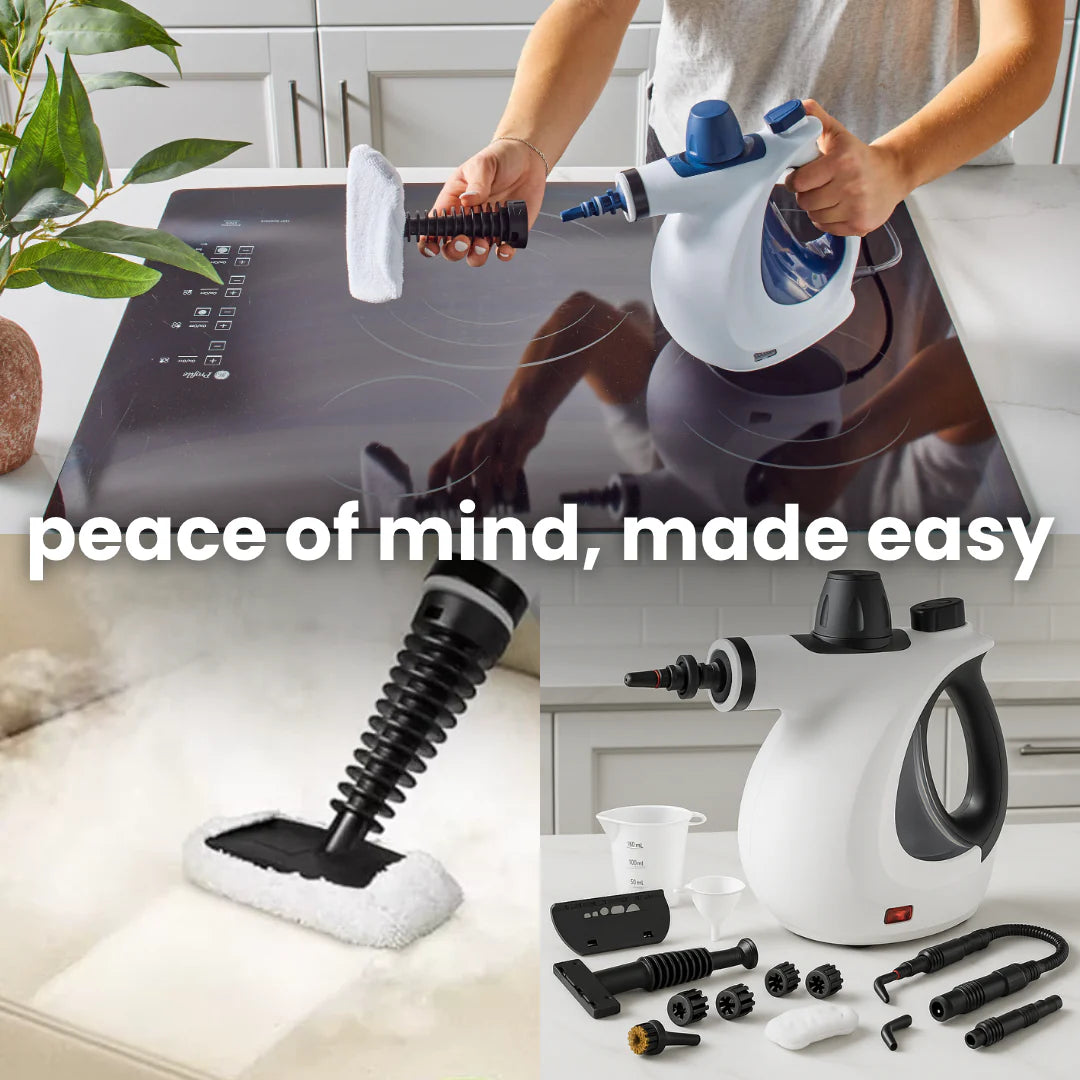 Get your home sparkling clean in minutes. This steam cleaner removes grease, dirt, and grime using only water — no harsh chemicals. It’s safe for kids, pets, and all surfaces, giving you a quick, easy, and natural way to clean.